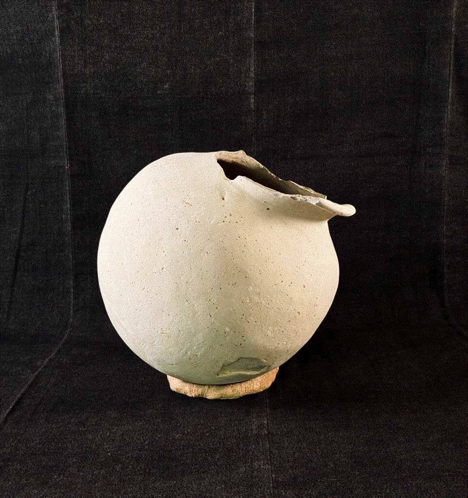 They used the vessel on the mud floor of their dwelling, buried halfway to the ground. As such, the bottom is round and cannot stand alone. I put it on the ring made to fit it and to be stable. You can choose the angle of your liking.
